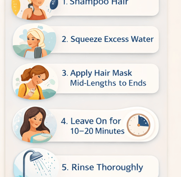Using a hair mask properly makes a significant difference in results. Follow this method for best performance.
